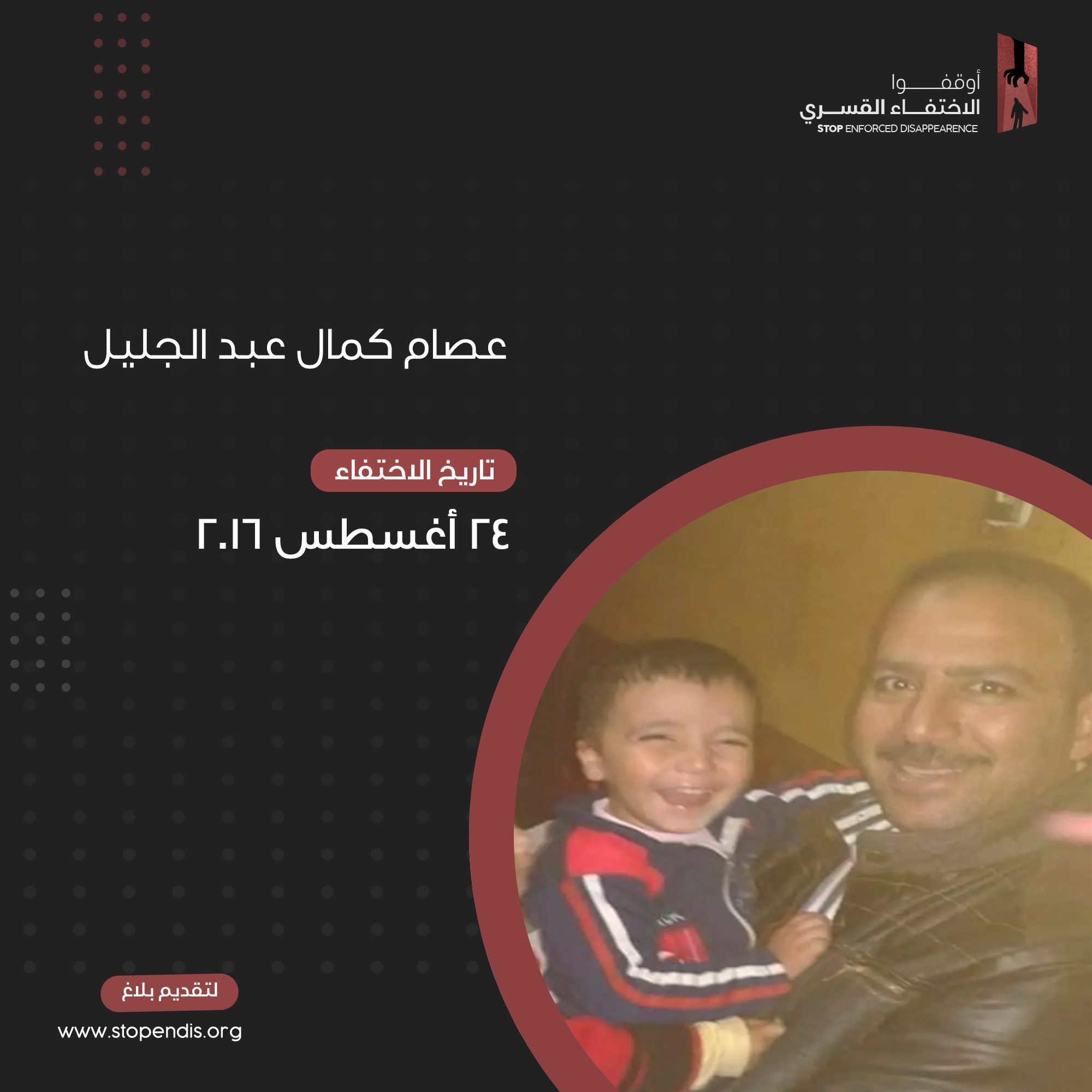 للعام السابع على التوالي تواصل قوات الانقلاب في الجيزة جريمة الإخفاء القسري للمهندس عصام كمال عبد الجليل عبد العليم، 43 عاما، بعدما اعتقلته يوم يوم 24 أغسطس 2016 من مدينة السادس من أكتوبر.