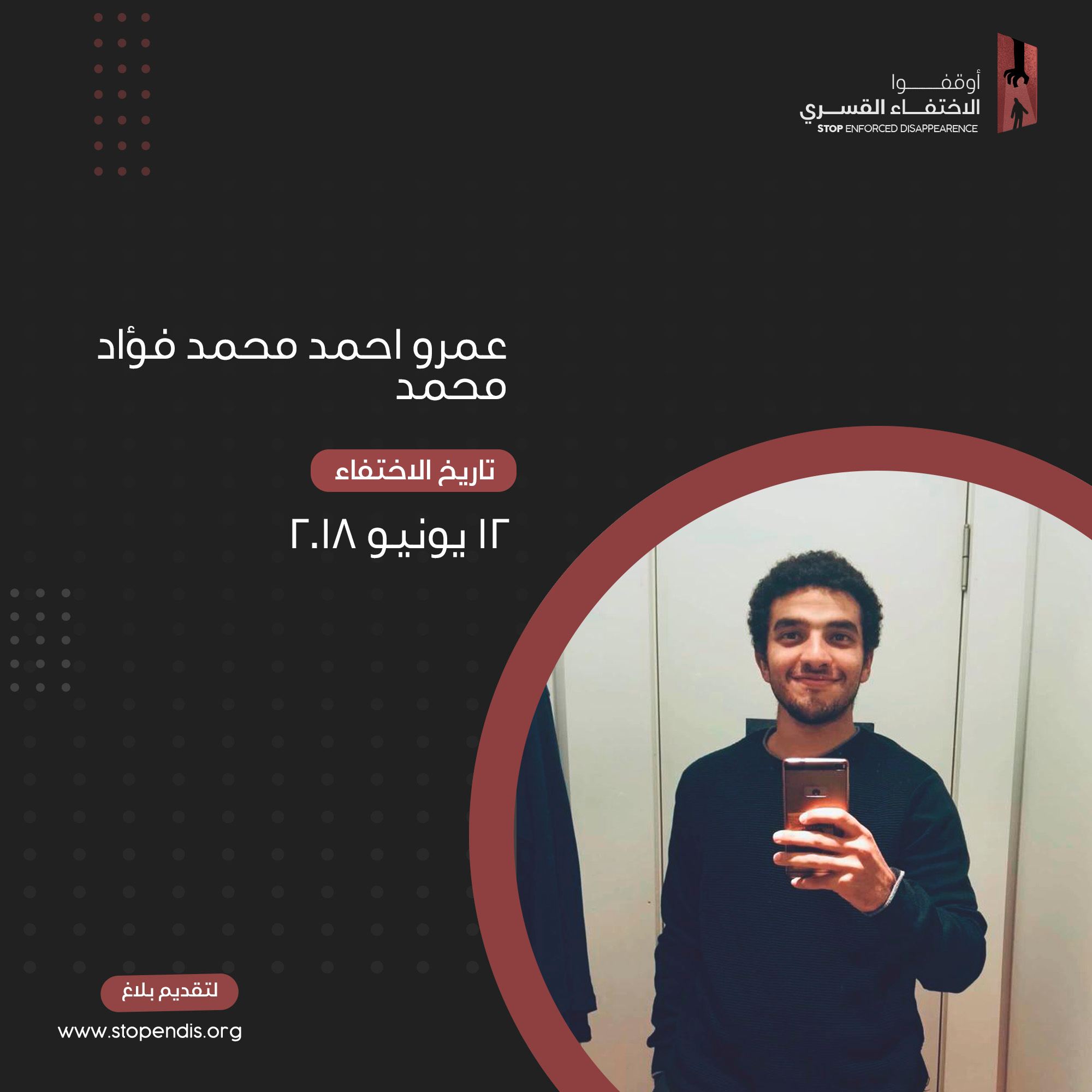 الجريمة ذاتها تتواصل بحق “عمرو أحمد محمد فؤاد محمد” ويبلغ من العمر 27 عاما ويقيم بالهرم في الجيزة ويعمل بالتسويق والدعاية للعام الرابع على التوالي ضمن مسلسل جرائم النظام الانقلابي ضد الإنسانية والتي لا تسقط بالتقادم .