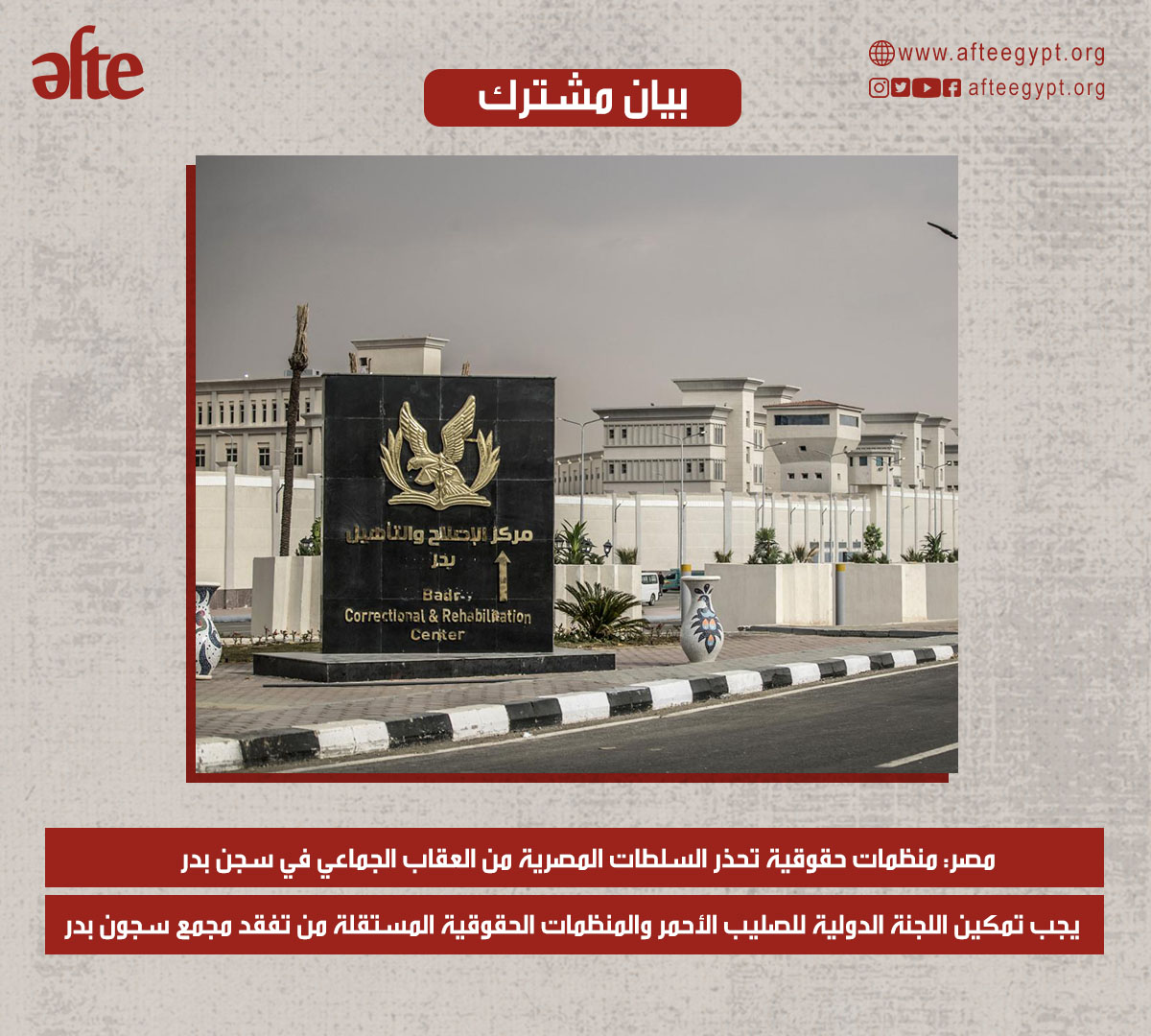 طالبت 38 منظمة حقوقية مصرية ودولية بتشكيل آلية أممية مستقلة تتولى مراقبة وتقييم أوضاع حقوق الإنسان في مصر؛ يتم تكليفها بالتحقيق والإبلاغ الانتهاكات في أماكن الاحتجاز وحذرت سلطات النظام الانقلابي في مصر من العقاب الجماعي في سجن بدر.