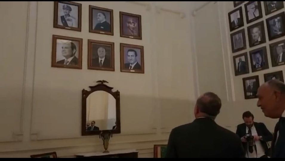 واصطحب وزير الانقلاب الوزير التركي في جولة تفقد فيها أقسام وزارة الخارجية ومتحفها، ووقف الاثنان أمام لوحة كبيرة تحمل صور رؤساء مصر بداية من العام 1952 وحتى الآن، وكانت اللقطة الأبرز فيها خلوها من اسم وصورة الرئيس الشهيد مرسي، وتلك هى المرة الأولى التى يفعلها وزير خارجية العسكر مع ضيف من دولة أخرى منذ الانقلاب العسكري ٢٠١٣.