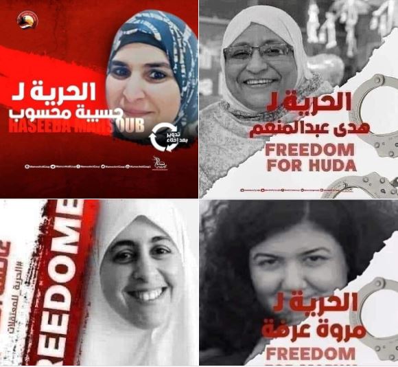 وقبل يوم طالبت الحركة بالحرية لعدد من معتقلات الرأي عبر وسم #عاوزينهم_يفطروا_معانا بينهن السيدة حسيبة محسوب التي تقضي رابع رمضان في سجون السيسي ، سمية ماهر حزيمة عروس البحيرة التي تقضي سادس رمضان في سجون السيسي ، فوزية الدسوقي التي تقضي سابع رمضان في سجون السيسي ومحكوم عليها بالسجن 10سنوات ، الطالبة إسراء خالد التي تقضي ثامن رمضان في سجون السيسي ومحكوم عليها بالسجن لمدة 18عاما ، السيدة عائشة الشاطر التي تقضي خامس رمضان في سجون السيسي وحكم عليها بالسجن المشدد 10سنوات مؤخرا ، الدكتورة بسمة رفعت التي تقضي سابع رمضان في سجون السيسي ومحكوم عليها بالسجن لمدة 15عاما ، الصحفية علياء عواد التي تفضي سادس رمضان في سجون السيسي ومحكوم عليها بالسجن لمدة 15عاما ، الحقوقية هدى عبد المنعم التي تقضي خامس رمضان في سجون السيسي ، وحكم عليها مؤخرا بالسجن 5سنوات ومراقبة 5سنوات ، الحاجة سامية شنن التي تقضي عاشر رمضان في سجون السيسي ومحكوم عليها بالسجن المؤبد ، المترجمة مروة عرفة التي تقضي ثالث رمضان في سجون السيسي .