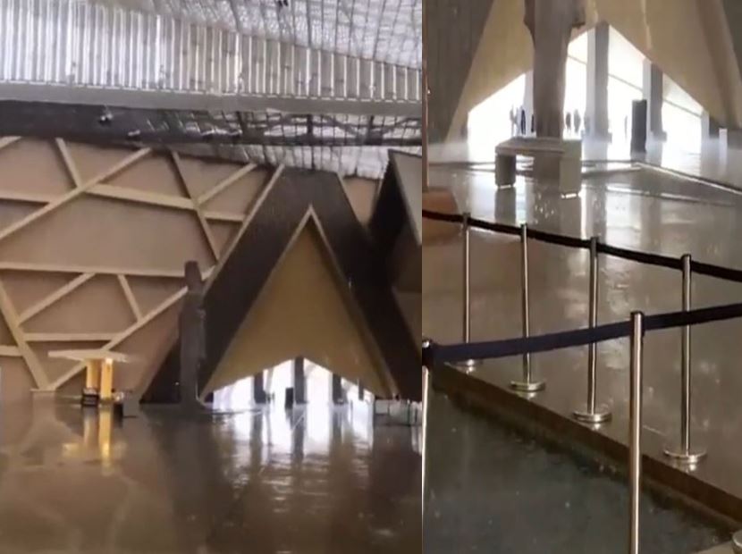 تداول ناشطون على مواقع التواصل مقاطع فيديو لأمطار اخترقت بغزارة المتحف المصري الكبير، وأغرقت البهو الرئيسي للمتحف من سقفه الذي أنشأته الهيئة الهندسية للقوات المسلحة قبل أيام من افتتاحه.