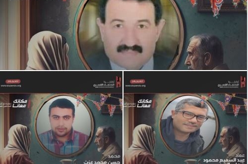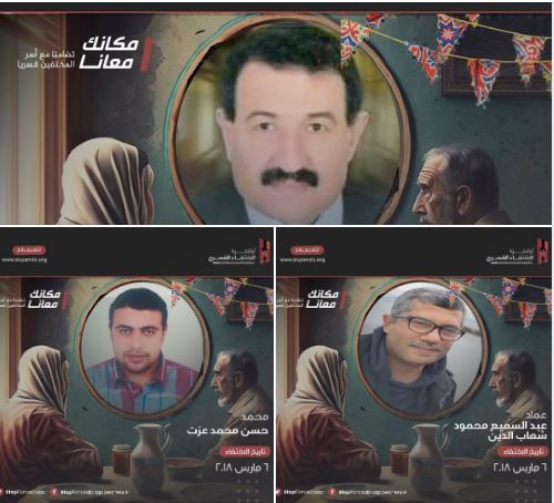كما جددت الحملة المطالبة برفع الظلم الواقع على المهندس "عماد عبدالسميع " المختفي قسريا للعام الثابث على التوالي وقالت : "عماد عبد السميع محمود شهاب الدين ، ثالث رمضان يعدي ومكانه لسه فاضي".