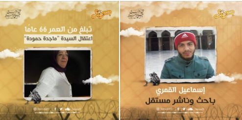 رصدت مؤسسة جوار الحقوقية اعتقال قوات الانقلاب للسيدة “ماجدة إبراهيم إبراهيم حمودة” البالغة من العمر 66 عاما، في 13 إبريل الماضي من الشارع في الإسماعيلية وذلك بعد نشرها فيديو على “تويتر” حول ارتفاع الأسعار.