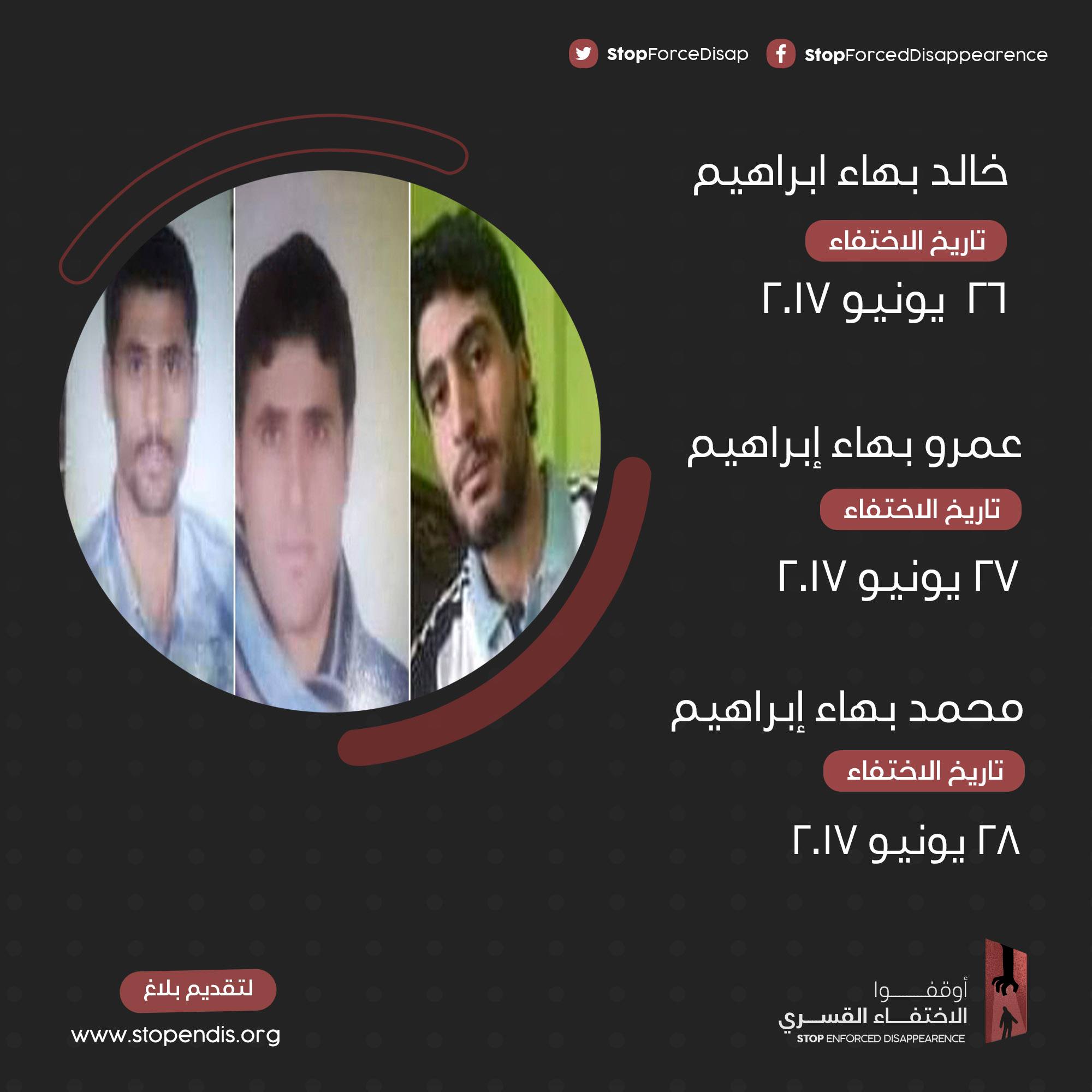كما طالبت حملة أوقفوا الاختفاء القسري بوقف جريمة إخفاء 3 أشقاء من أبناء محافظة الدقهلية يتواصل إخفاؤهم منذ نحو 6 أعوام على التوالي منذ أن تم اعتقالهم بشكل تعسفي في شهر يونيو عام 2017، حيث تعرض ثلاثتهم للاختفاء من أماكن مختلفة خلال أيام متتالية على النحو التالي :