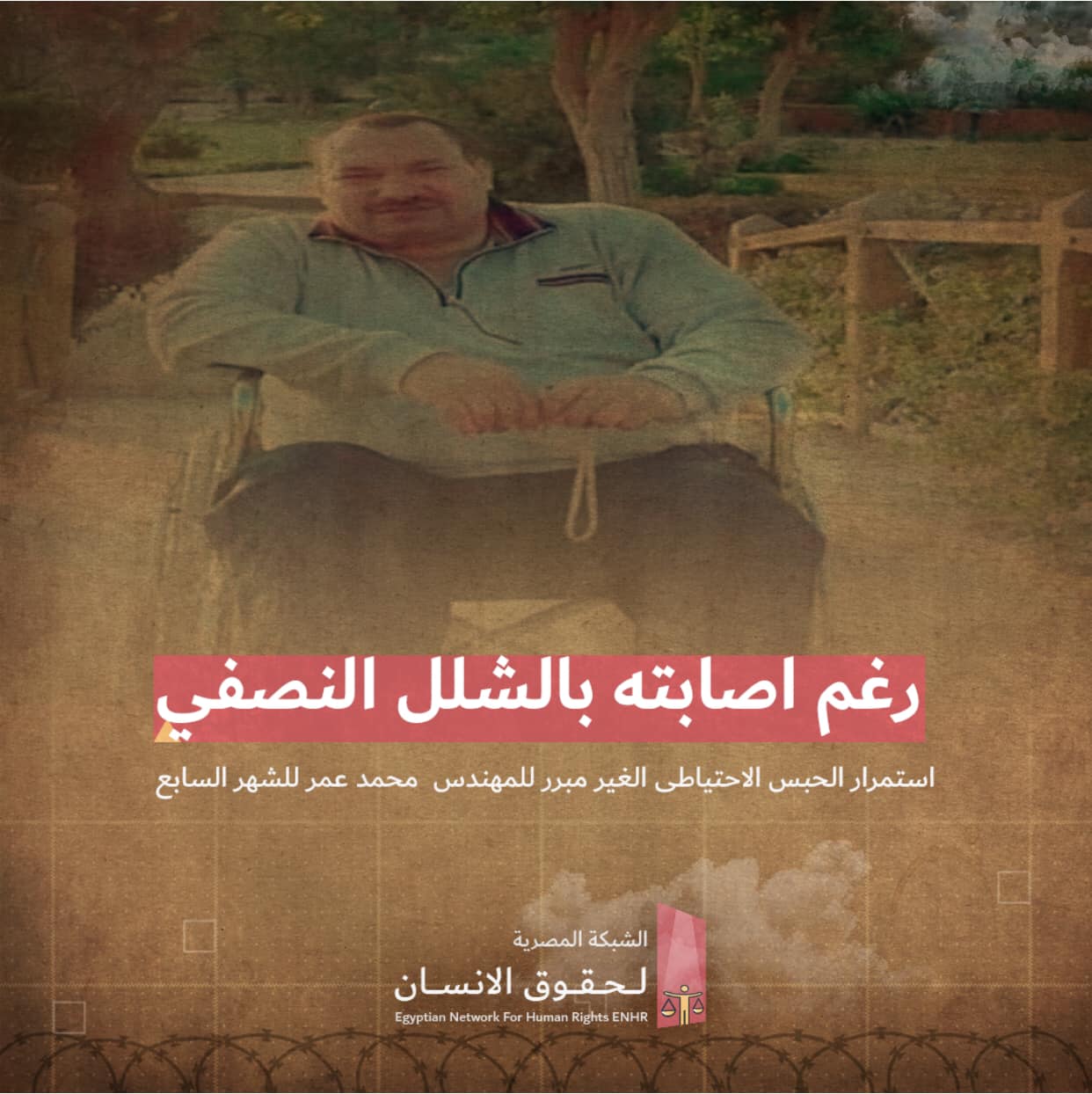 وجددت الشبكة المصرية لحقوق الإنسان المطالبة بإخلاء سبيل المهندس محمد عمر وعودته إلى أسرته، ومنحه الرعاية المناسبة لحالته الصحية لحين منحه حريته، حيث إن معظم المعتقلين معه على ذمة القضية قد حصلوا على قرارات من النيابة بإخلاء سبيله، وإن كل جرم المهندس عمر هو مطالبته بمعرفة مكان ابنه المختفي قسرا.