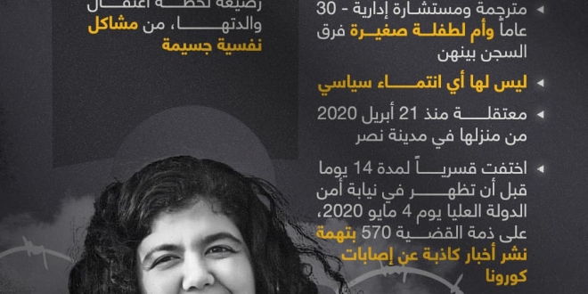 وقالت المنظمة عبر حسابها على فيس بوك : “مروة عرفة مترجمة اعتقلت من منزلها في أبريل 2020 وتعرضت للإخفاء القسري لمدة 15يوما، وبعدها ظهرت في النيابة على ذمة قضية ملفقة”.