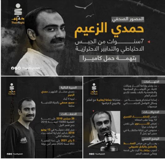وأشارت إلى أن حمدي الزعيم، مصور الحياة اللندنية سابقا، هو أحد عشرات الصحفيين والإعلاميين قيد السجن أو الحبس الاحتياطي ، بينهم سيدات، بعضهن في العقد السادس.
