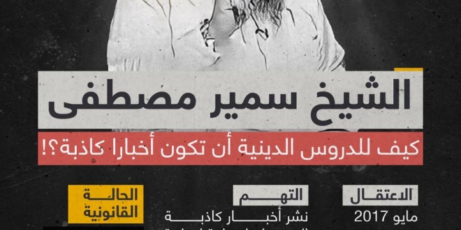 وتابعت: قضية بلا أدلة إدانة واتهامات مُعلبة تحمل رقم 789 لسنة 2017 قضى الشيخ ـ سمير ـ أكثر من عامين على ذمتها رهن الحبس الاحتياطي بالمخالفة للقانون، ليحصل في أكتوبر 2019 على إخلاء سبيل.