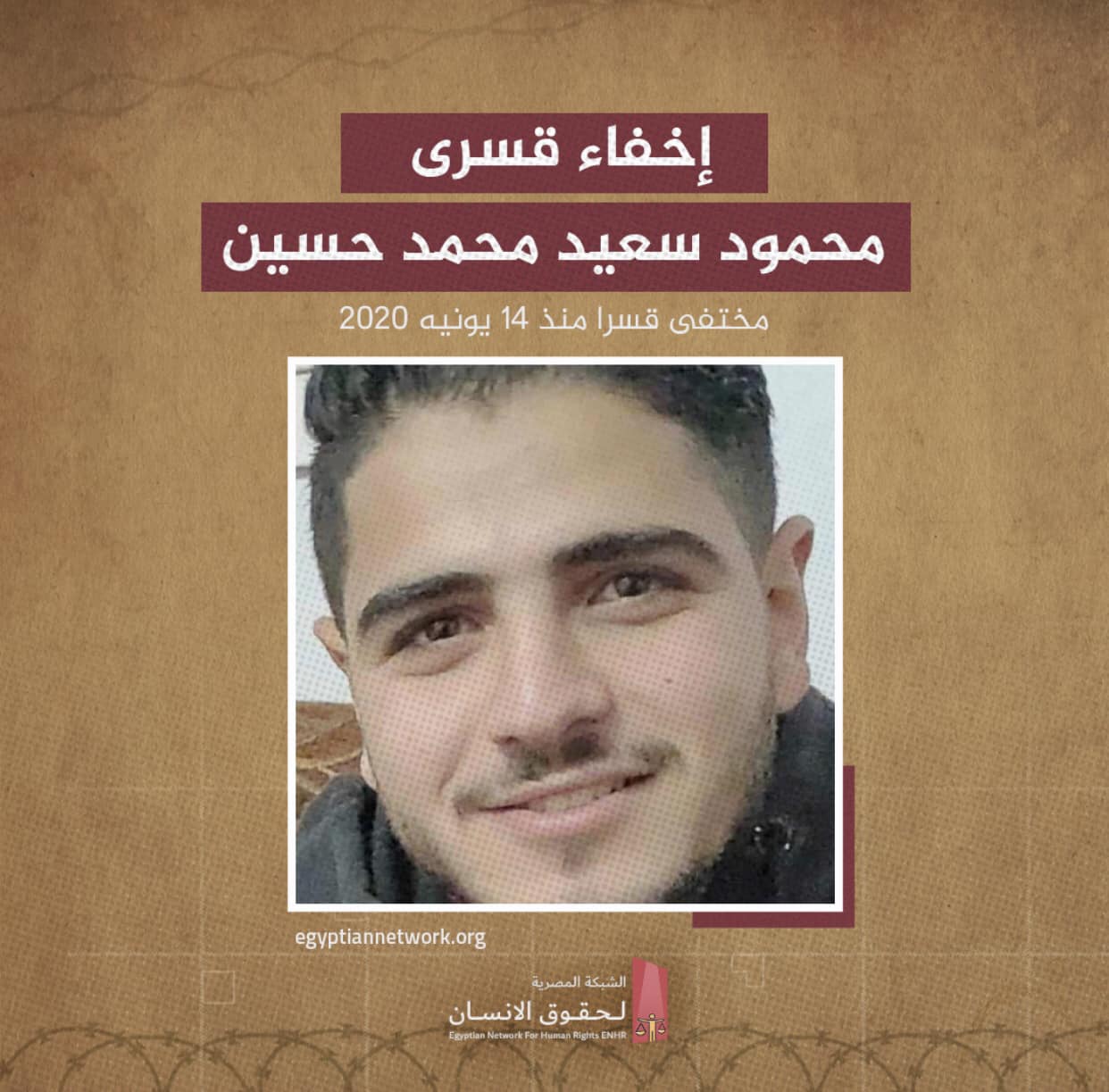 ضمن جرائم نظام الانقلاب التي لا تسقط بالتقادم، رصدت الشبكة المصرية لحقوق الإنسان استمرار الإخفاء القسري للمواطن محمود سعيد محمد حسين البالغ من العمر 25 عاما ويعمل موظفا بإحدى الشركات بمحافظة المنوفية منذ أن تم اعتقاله تعسفيا بتاريخ 14 يونيو 2020 .