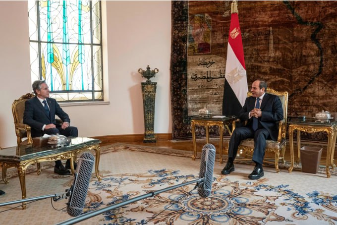 جلس السيسي واضعا كفيه بين قدميه مخاطبا “أنتوني بلينكن” وزير الخارجية الأمريكي في القاهرة: “ما حدث منذ 9 أيام هجوم حماس، كان كثيرا وصعبا، مفيش كلام، ونحن نُدينه، مفيش كلام” وهكذا أصبح السيسي أول حاكم عربي – مجازا-  يدين الفلسطينيين وعملية طوفان الأقصى بشكل واضح وصريح.