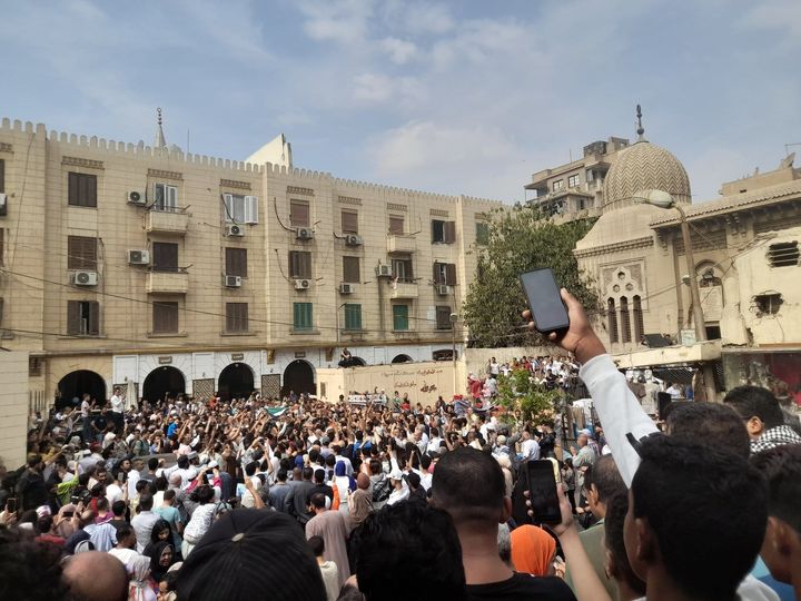 وشارك العشرات على مدى جمعتين ماضيتين من المصريين في وقفة احتجاجية بساحة الأزهر الشريف الداخلية بعد نداء الأزهر للأمة الإسلامية، بأن تستثمر قوتها وأموالها، وتقف بها خلف فلسطين وشعبها”.