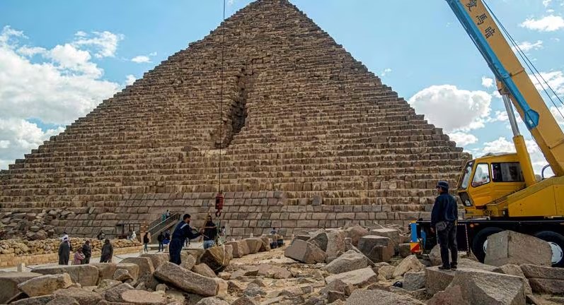 ونشرت مقاطع فيديو الأسبوع الماضي تظهر مسؤولا مصريا يشرف على أعمال الترميم في الهرم الذي يقع بالقرب من تمثال أبي الهول في الجيزة.