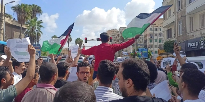 ألقت قوات الأمن القبض على 6 ناشطين من منازلهم في محافظة الإسكندرية على خلفية رفعهم لافتة دعما لفلسطين، الأحد 28 أبريل 2024، وهم عمر سامي الأنصاري جويلي، عبدالله أحمد عبدالدايم، شهاب الدين أشرف الصمدي، يوسف ياسر محمد فران، محمد أحمد حامد دياب، كما ألقت أمس الاثنين القبض على القيادي العمالي شادي علي محمد الشهير بشادي محمد.