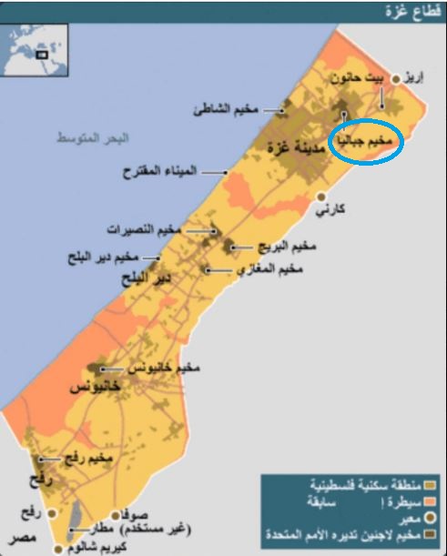 ومساحة مخيم جباليا لا تتجاوز 1.5 كيلو متر مربع، ويعد من أبرز معاقل المقاومة الفلسطينية في القطاع، وبشكل خاص كتائب القسام.