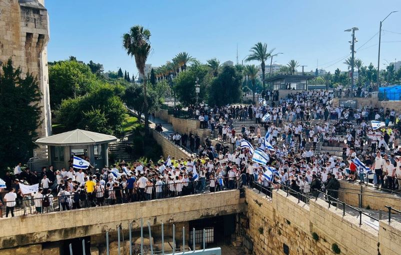 ووصلت مسيرة الأعلام الإسرائيلية إلى طقس الرقص، بعدما بدأت رسميا في شارع يافا وانطلقت باتجاه باب العامود والحي الإسلامي وبدأت الرقصات التلمودية في الساعة 6 مساء الأربعاء 5 يونيو 2024.