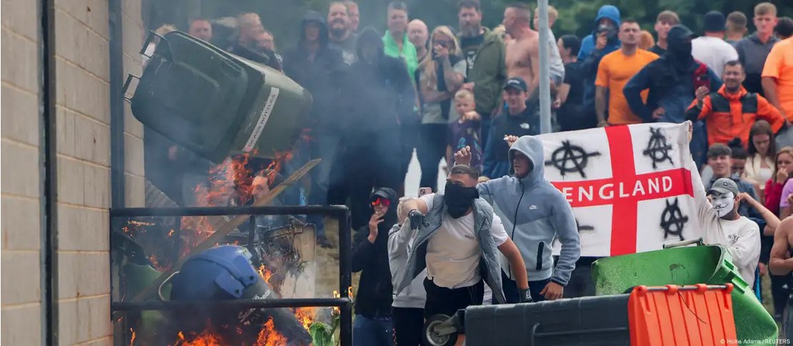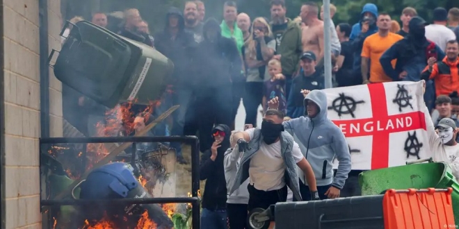 وفي 9 يوليو الماضي شهدت مدن وبلدات اشتباكات بين مئات من مثيري الشغب والشرطة حطموا خلالها نوافذ فنادق تؤوي طالبي لجوء من أفريقيا والشرق الأوسط، مرددين هتافات منها “أخرجوهم” و”أوقفوا القوارب” في إشارة إلى الذين يصلون إلى بريطانيا في قوارب صغيرة.