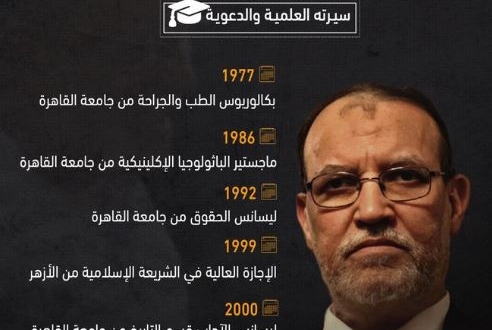 وأضاف، “هو أحد أساتذتي الكبار في مجال السياسة والعمل العام، استفدت من تجاورنا في السكن، كنت كثير الزيارات له في منزله وفي معمل التحاليل الطبية الذي كان يرأسه في الجمعية الطبية الإسلامية، واكبت تطوره السياسي في العمل الطلابي انتقالا للعمل النقابي أمينا مساعدا لنقابة الأطباء، وأمينا للصندوق، وعضوا بالمنظمة المصرية والعربية أيضا لحقوق الإنسان وممثلا للإخوان في العديد من التحالفات والحوارات السياسية وعضوا مؤسسا وأميناً مساعداً للمؤتمر القومي الإسلامي، وأصغر نائب في البرلمان المصري عام ١٩٨٧، ومسئولاً عن اللجنة السياسية في جماعة الإخوان المسلمين، وعضوا بمكتب الإرشاد، وصولا إلى رئاسة لجنة العلاقات الخارجية في برلمان الثورة، وعضوا بالجمعية التأسيسية للدستور، ونائبا لرئيس حزب الحرية والعدالة”.