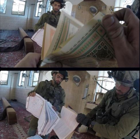 عرضت قناة الجزيرة أخيرا مشاهد حصرية حصلت عليها وسجلتها كاميرات جنود للاحتلال سقطت في غزة حيث توثق جرائم إحراق جنتود الاحتلال الصهيوني المصاحف وهو الكتاب المقدس عند المسلمين في أحد مساجد القطاع والعبث بمحتويات المساجد قبل نسفها.