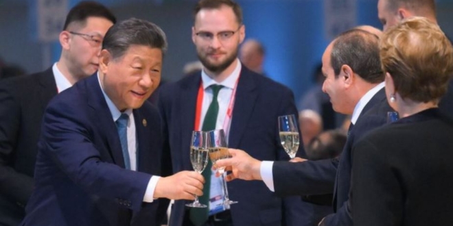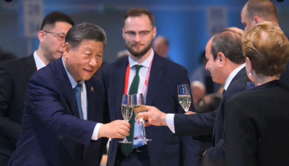 ولكن هذه المرة ظهر السيسي في قمة (البريكس) وهو يقادح أقداح الخمر مع رئيس الصين تارة ومع الرئيسين الصيني والروسي تارة وهو سعيد يمد يده ب”كأس” ونشر موقع البريكس الصورة للمشككين.
