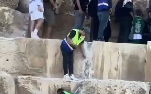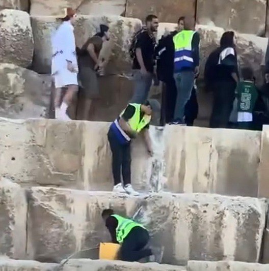 أوان مصر كتبت: “مهزلة وكارثة تاريخيّة.. عمال يحفرون على أحجار الهرم ويحطمون تاريخ حضارة 7 اللآف سنة وسط غياب الرقابة”.