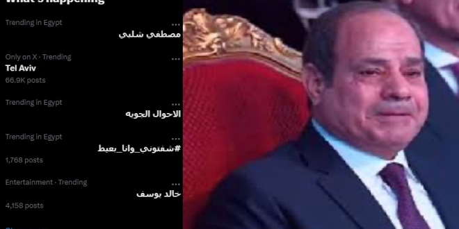 تصدر هاشتاج #شفتوني_وأنا_بعيط منصة التواصل الاجتماعي (إكس) أو “تويتر” سابقا وقال مغردون إن ما يفعله في المصريين ويستمر في صنعه يعني أن دموعه هي دموع النفاق الحاضرة في كل وقت.