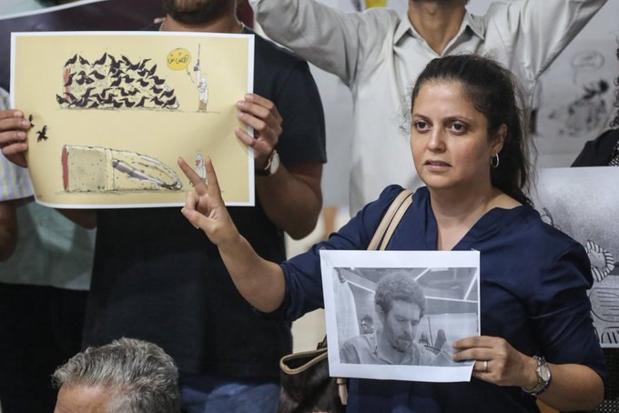 وظهرت بمقر نيابة أمن الدولة العليا، اليوم، زوجة أشرف عمر، والصحفي أحمد سراج، وذلك بعد اعتقالهما، على خلفية حوار فيديو، نشر على منصة “ذات مصر”، أجراه الصحافي مع زوجة الرسام المعتقل.