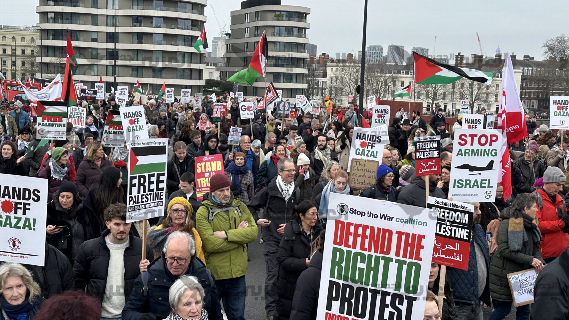 تظاهراليوم في العاصمة البريطانية لندن قرابة مائتي ألف متظاهر دعمًا للشعب الفلسطيني، ورفضًا لدعوات الرئيس الأميركي دونالد ترامب بالاستيلاء على قطاع غزة وتهجير الفلسطينيين. وانطلقت التظاهرة من أمام مقر الحكومة البريطانية وجابت شوارع لندن واختتمت أمام السفارة الأميركية.