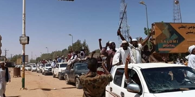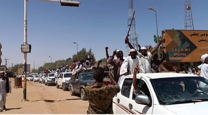 وتابع: “إنا نحمد الله عزَّ وجل أن أوقفنا موقف الحق الذي لا مِراء فيه ، وحَملنا أمانة الذود عن ديننا و عِرضنا وأرضنا خلف قواتنا المسلحة الباسلة ، وإن هذا والله لمجد الدهر وأخذ الثأر ، ووعد النصر. نحمده أن يسر لنا مقام العِزة والإباء ، وغيرنا قد تلطخت أيديهم بدماء السودانين وكسا وجوهَهُم الذل والهوان ( لو خرجوا فيكم ما زادوكم إلا خبالا) فالحمد لله الذي أقامنا وأقعدهم..”.