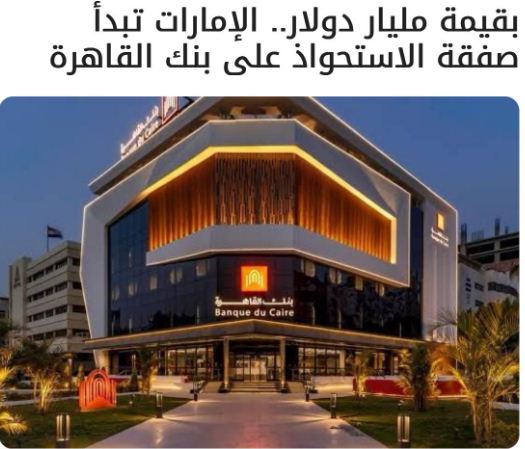 تصدر هشتاج #بنك_القاهرة منصات التواصل الاجتماعي مع اتجاه الإمارات لشرائه مقابل مليار دولار، أي أقل بمقدار 1.25 مليار دولار من العرض المقدم لشرائه قبل 17 عامًا من البنك الأهلي اليوناني الذي بلغ 2.25 مليار دولار في صفقة رفضتها الحكومة آن ذاك.