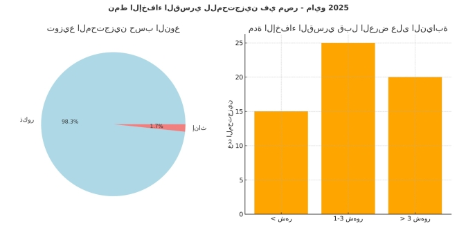 وأكدت مصادر حقوقية أن العرض على النيابة تم دون مراعاة الحقوق القانونية الأساسية للمحتجزين، حيث لم يُمنح معظمهم فرصة حقيقية للتواصل مع محام أو تقديم شكوى عن الانتهاكات التي تعرضوا لها، بما فيها التعذيب وسوء المعاملة، وهو ما يشكل مخالفة صارخة للدستور المصري، وتحديداً المادة (54) التي تلزم بعرض المقبوض عليه على جهة تحقيق خلال 24 ساعة، مع ضمان حقوقه القانونية.