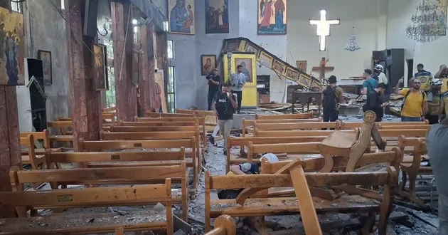 وأظهرت مشاهد آثار الدماء والدمار الكبير الذي حل في الكنيسة، حيث تزامن الانفجار مع قداس اليوم الأحد.