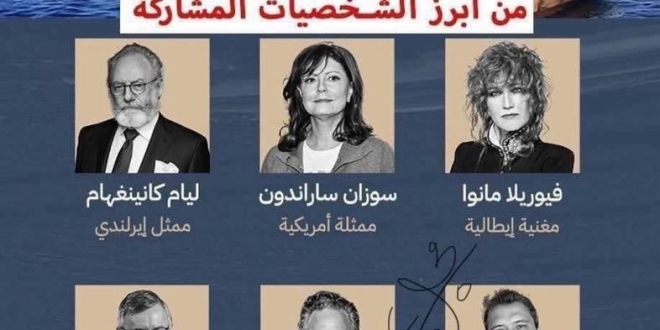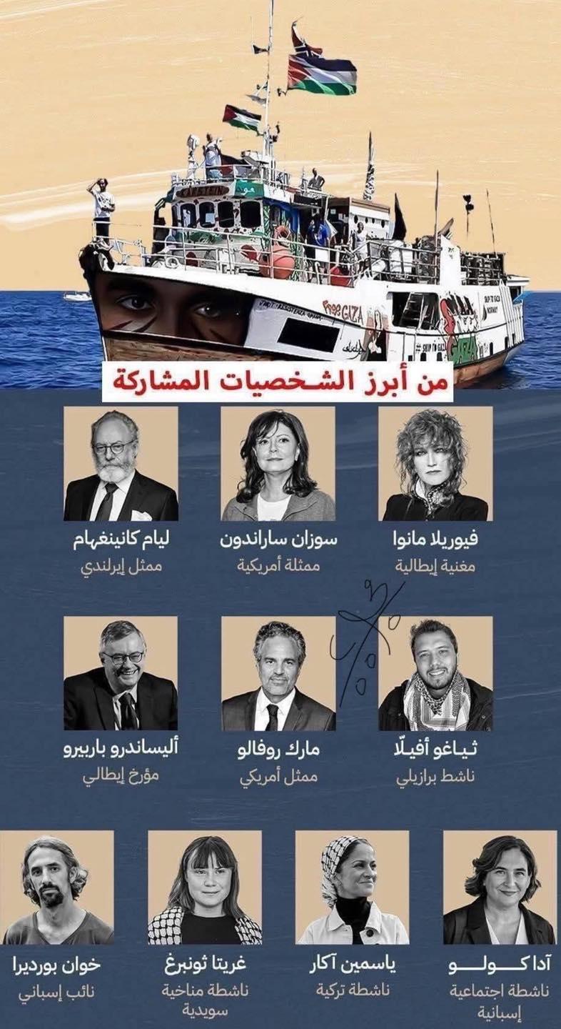 الفنانة الأمريكية سوزان ساراندون حائزة على الأوسكار وتقارب 80 تتجه لكسر حصار غزة في قارب ومعها آخرون وتساءل متابعون منهم الكاتبة فاطمة التريكي @eltreiki_f عن موقع الفنانين العرب "أين الفنانون العرب ؟لقد شاهدنا أحدهم في قلب بيروت قبل يومين وحوله آلاف يتراقصون ، لن اتحدث عن دماء ومجاعة غزة، هل سمعوا ال MK الإسرائيلية تزن فوق رؤوسهم ؟ يقولون لك حب الحياة تضرب هيك حياة ".