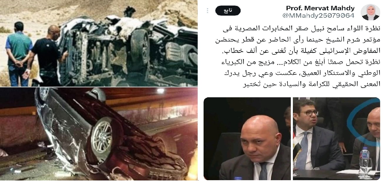 الأكاديمي د. عصام عبد الشافي @essamashafy علق على حادث وفاة عدد من الدبلوماسيين القطريين في مدينة #شرم_الشيخ قبل الزيارة المعلن عنها لترامب للمدينة " قائلا: "إذا لم يكن حادث سير طبيعي وكان حادثًا مدبرًا، يكون السؤال الأول في مثل هذه الحالات: من المستفيد من: تدبير هذا الحادث في هذا التوقيت.. في هذا المكان.. ضد أعضاء هذا الوفد تحديدًا؟