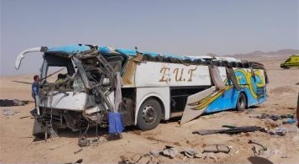 وقع الحادث إثر اصطدام أتوبيس سياحي بسيارة نقل كبيرة، وكان الاتوبيس على متنه 36 راكبا .