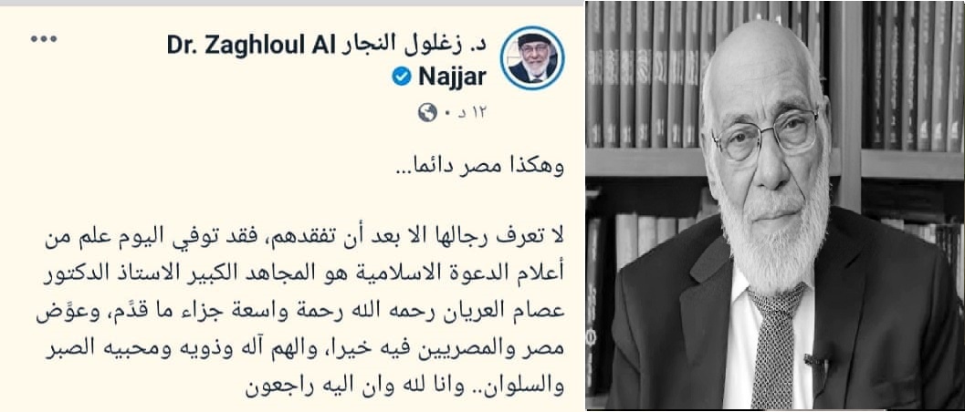 ربما ما يفسر سبب مغادرة رئيس "مركز الإعجاز العلمي" بالمجلس الأعلى للشئون الإسلامية، د. زغلول النجار، 92 عاما، والمتوفي الأحد 9 نوفمبر الجاري، مصر وإقامته في الأردن حتى مماته، ودفنه في عمان تصريحه الذي أعلنه ل يخشى في الله لومة لائم في يوليو من العام 2013، وخلال لقاء على فضائية "الجزيرة مباشر مصر" بأن ما حدث يوم 3 يوليو من العام نفسه، هو انقلاب عسكري على إرادة شعبية، مضيفًا أن دخول الجيش في المعركة السياسية "وصمة عار"، بعد خيـانة السيسي لوعده ويمينه الذي أقسمه أمام الرئيس المنتخب (د.محمد مرسي)"