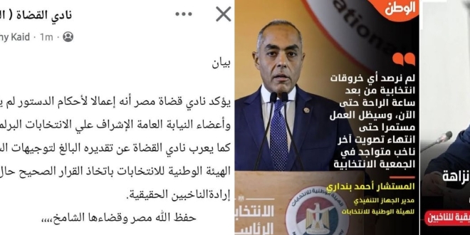 وكشفت تقارير أن صراعا علنيا بين نادي القضاة وهيئات القضاء حول مسؤولية الإشراف على الانتخابات وحولّ النظام الموقف الشفاف من نادي القضاة إلى صراح، حيث لم يعد مجرد اختلاف داخلي هادئ، بل تحول إلى جدل معلن ومكشوف أمام الرأي العام بين مؤسسات قضائية يفترض أنها تعمل في انسجام.