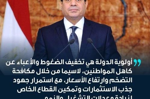 والأزمة الاقتصادية في مصر تتمثل في (انخفاض قيمة الجنيه، ارتفاع تكاليف الاستيراد، الديون والعجز في الموازنة)، وسياسات الحكومة في العاجة تكون في: (رفع أسعار الوقود والدعم كجزء من الإصلاحات مع صندوق النقد).