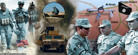 ويضيف أن "السيسي يقترح أن تقوم الولايات المتحدة بإنزال قوات خاصة بشبه جزيرة سيناء، وتقيم قواعد، وتستخدم أسطول طائراتها دون طيار في مواجهة عناصر التنظيم بسيناء".