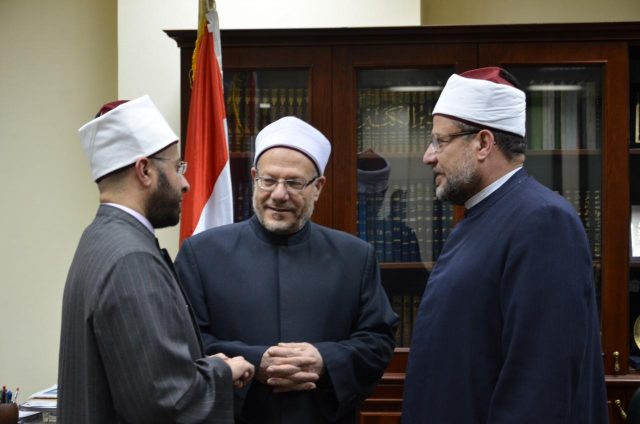 التقى محمد مختار جمعة، وزير الأوقاف في حكومة الانقلاب، وشوقي علام، مفتي العسكر، وأسامة الأزهري، المستشار الديني لقائد الانقلاب عبد الفتاح السيسي، بدعوي تنسيق بين جهود جميع المؤسسات ...