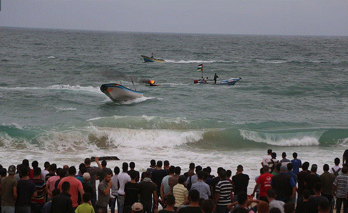 93 مصابًا في اعتداء قوات الاحتلال على مسيرة بحرية في غزة