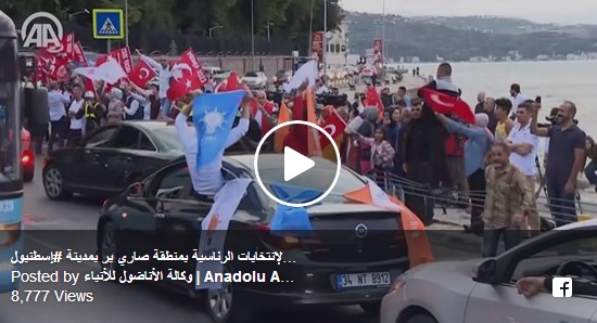 خرج المواطنون في عدد من شوارع إسطنبول بتركيا؛ احتفالًا بتقدم الرئيس رجب طيب أردوغان وحزبه في الانتخابات الرئاسية والبرلمانية، بعد فرز حوالي 90% من أصوات الناخبين. وكان الرئيس ...