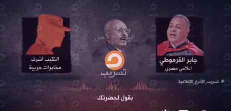 كشفت المكالمة التي أجراها ضابط المخابرات الحربية أشرف، مع الاعلامي الانقلابي جابر القرموطي، بشأن مقتل الرئيس المخلوع علي عبد الله صالح. وقال أشرف للقرموطي :”عايزين من حضرتك النهاردة ...