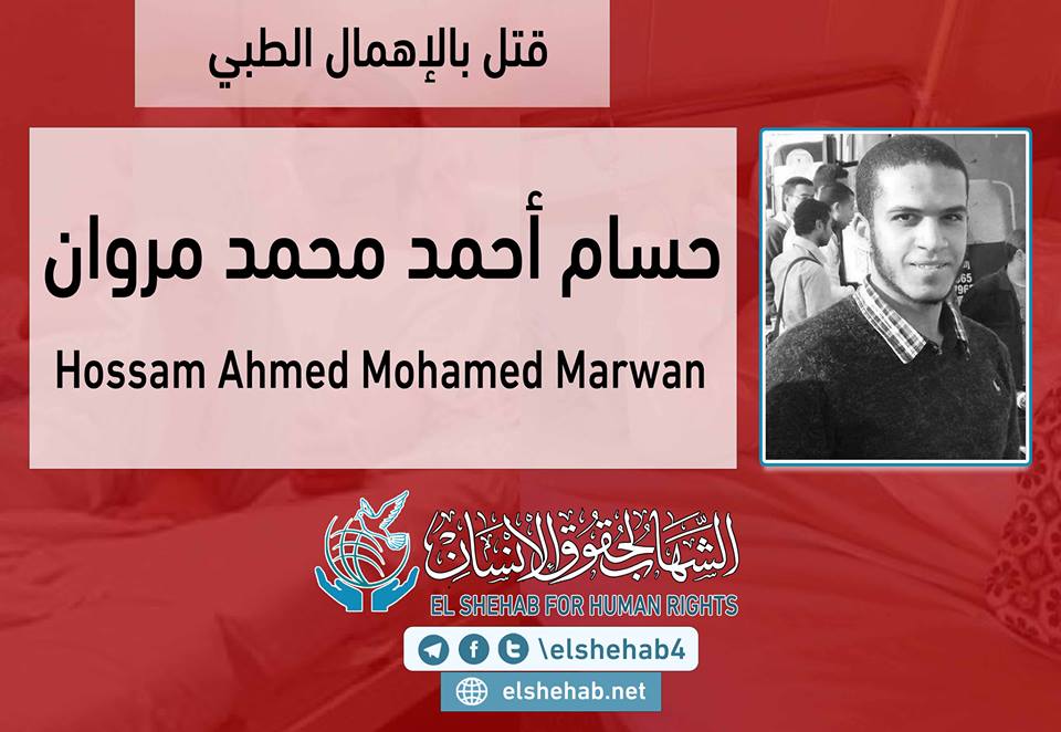 توفي الشاب المعتقل حسام أحمد محمد مروان، الطالب بكلية الهندسة جامعة الشروق، اليوم الجمعة 5 يناير 2018؛ بسبب الإهمال الطبي بمقر احتجازه داخل سجن العقرب. وكانت ميليشيات الانقلاب ...