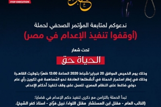 مؤتمر صحفي لحملة “أوقفوا تنفيذ الإعدام في مصر”.. غدًا الخميس