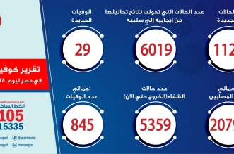 أعلنت وزارة الصحة والسكان بحكومة الانقلاب، اليوم الخميس، عن تسجيل 29 وفاة و1127 إصابة جديدة بفيروس كورونا، ليبلغ إجمالي الوفيات 845 والإصابات 20793 . يأتي ذلك فى الوقت ...