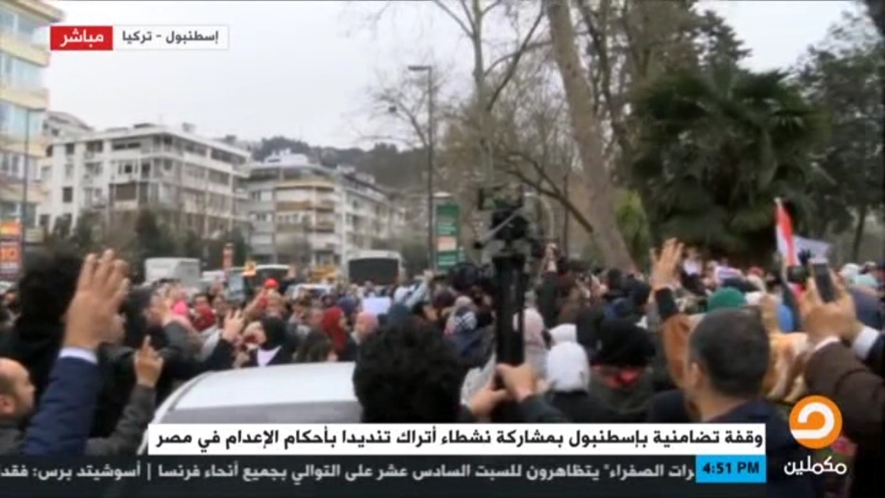 نظمت جمعية “رابعة”، بمشاركة مؤسسات تركية، وقفة احتجاجية أمام القنصلية المصرية بإسطنبول في تركيا، رفضا لتنفيذ أحكام الإعدام. رفع المشاركون الأعلام المصرية وشارات رابعة وصور الشهداء والمعتقلين الذين ...
