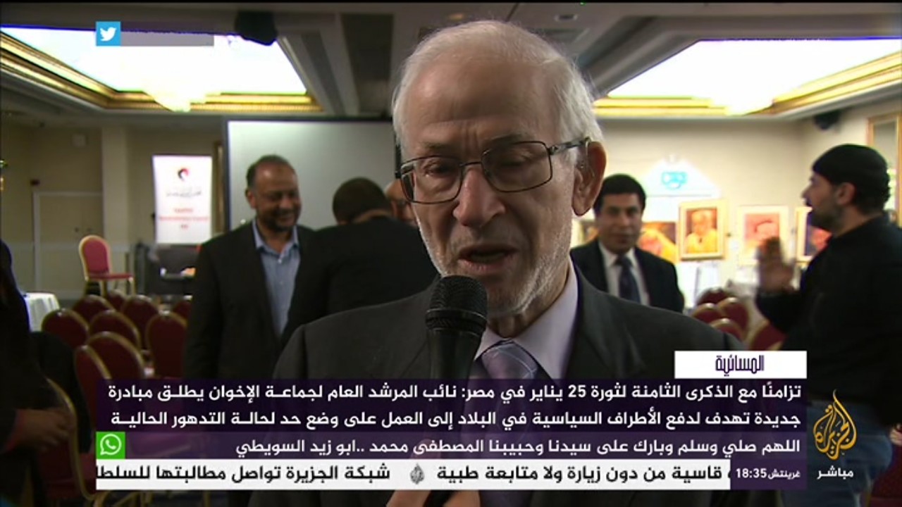 تزامنا مع الذكرى الثامنة لثورة 25 يناير أطلق إبراهيم منير نائب المرشد العام لجماعة الإخوان المسلمين، مبادرة سياسية جديدة تهدف إلى دفع الأطراف السياسية في البلاد إلى العمل ...