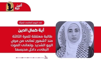 جددت حركة "نساء ضد الانقلاب" المطالبة بالحرية لـ" آية كمال الدين" البالغة من العمر 28 عاما، والمعتقلة للمرة الثالثة، وتقبع منذ يوليو 2022 في سجون السيسي على ذمة ...