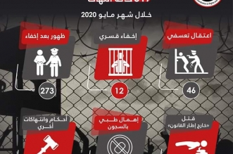 ما بين الاعتقال والإخفاء القسري والإهمال الطبي والقتل خارج إطار القانون.. انتهاكات متنوعة رصدها حصاد الانتهاكات لحقوق الإنسان عن شهر مايو المنقضي، الصادر عن التنسيقية المصرية للحقوق والحريات. ...